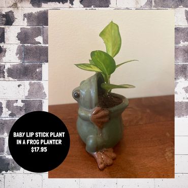 3” watering can w/ spider plant, 3 lipstick plants and a succulent.